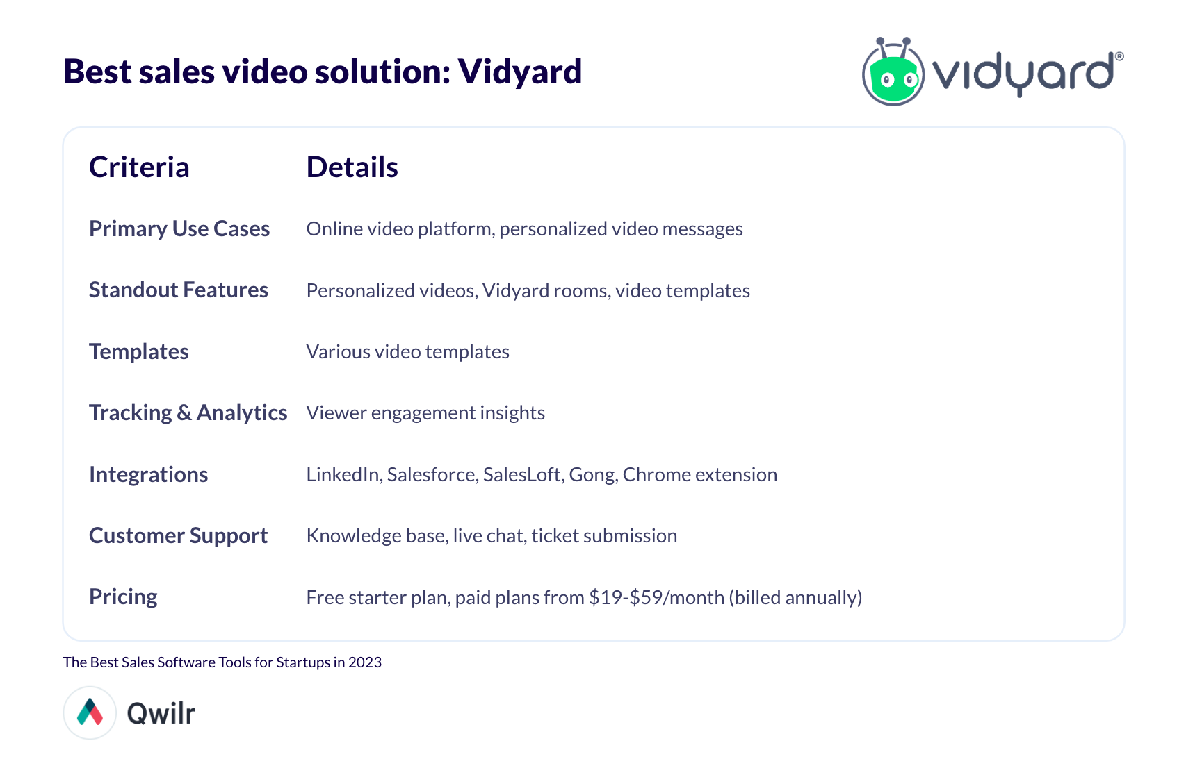 Best sales video solution: Vidyard