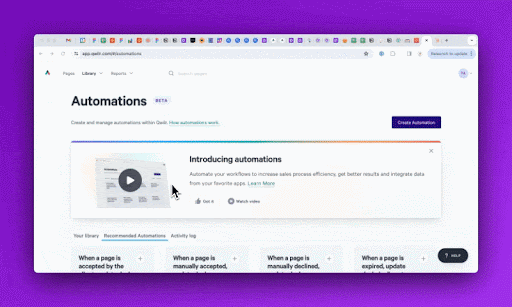 Get sales and marketing on the same page by creating a single destination for sales content. With Qwilr it’s easy to create a marketing-approved library of assets reps can pull from to create personalized content, fast.