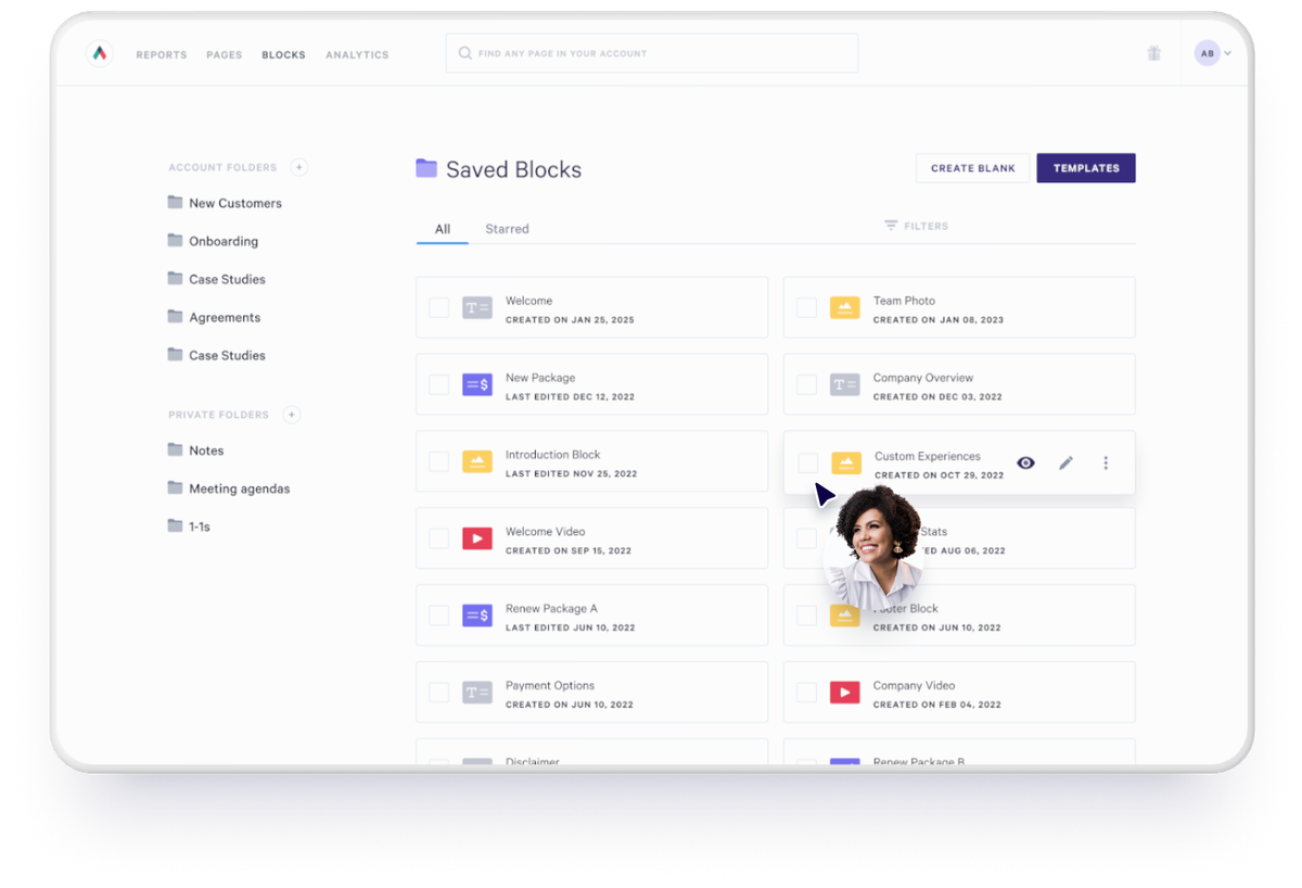Build a library of reusable, approved content your reps can drag and drop