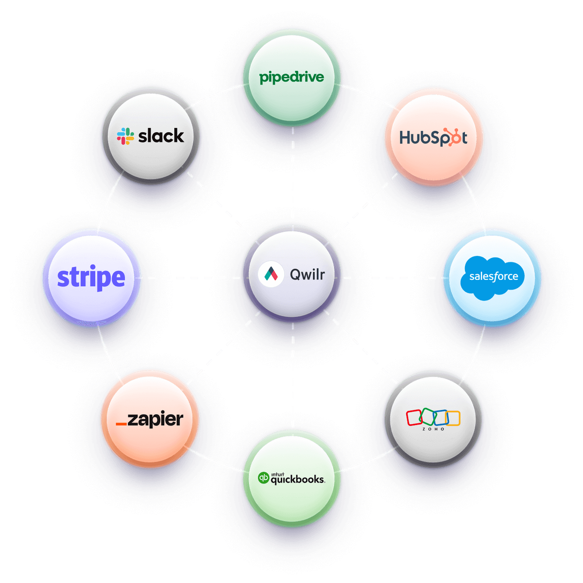 Qwilr integrates with all the leading CRM, sales and accounting software, like HubSpot, Salesforce, Zoho, Pipedrive, and Quickbooks.